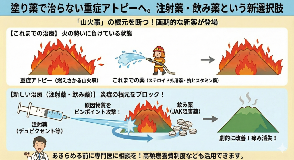 塗り薬で治らない重症アトピーの治療。新しい治療、生物学的製剤