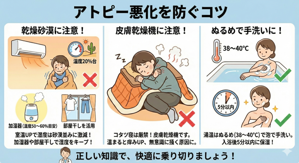 【上越の冬】エアコンとコタツが肌を壊す?アトピー悪化の「乾燥」と「入浴」