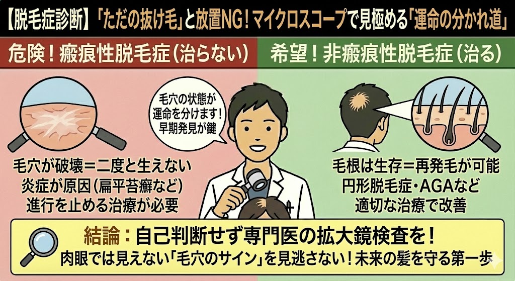 【脱毛症の診断】「ただの抜け毛」と放置しないで。ダーモスコピーで見える「もう生えない毛」のサイン