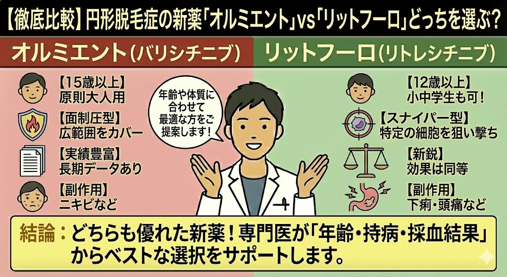 円形脱毛症の新薬「オルミエント」と「リットフーロ」の違い