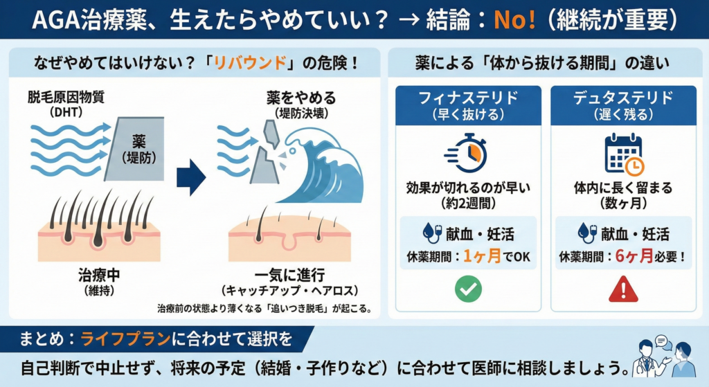 AGA治療薬のやめ時と、薬による「期間」の違い
