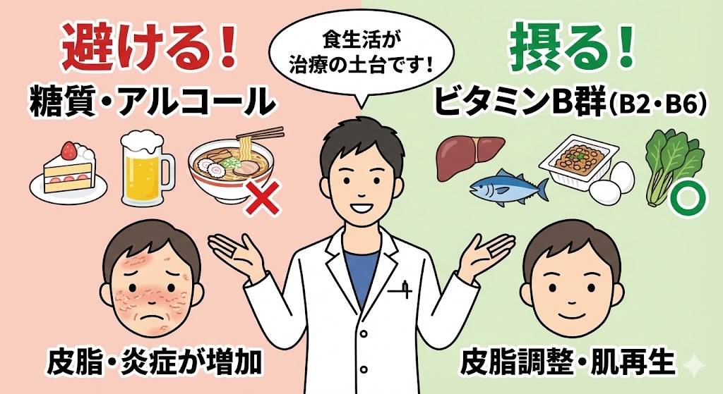 脂漏性皮膚炎は食事で良くなる?アルコールは?皮膚科医が教える「食べていいもの・悪いもの」