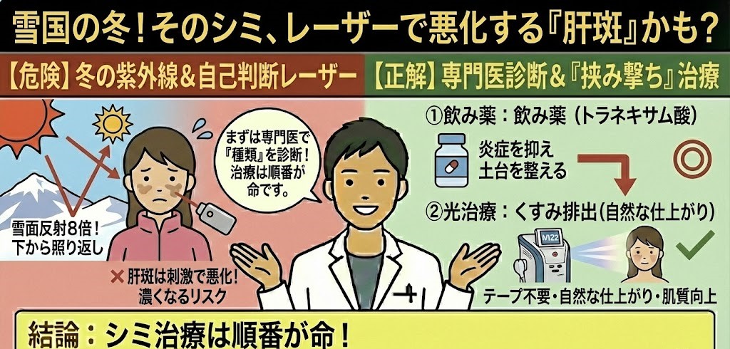 今回は、雪国特有のシミ対策と、内側からのケアについて解説します。